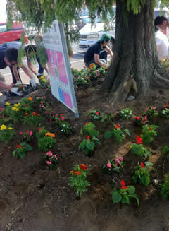 2011年6月26日に夏のクリーン作戦が行われました。 鉢植えの花も植え替えられました。